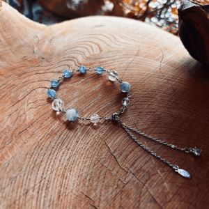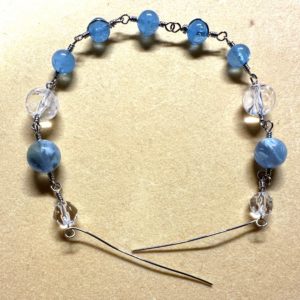 ゴムブレスレットではない「ブレスレット」はどう仕立てるのかといいますと、わたしは「メガネ留め」という、金属のワイヤー(針金)をねじって天然石(素材)を留める手法が得意なことと、また見ばえも私個人としては好きなため、メガネ留めで天然石を繋げることにしました。